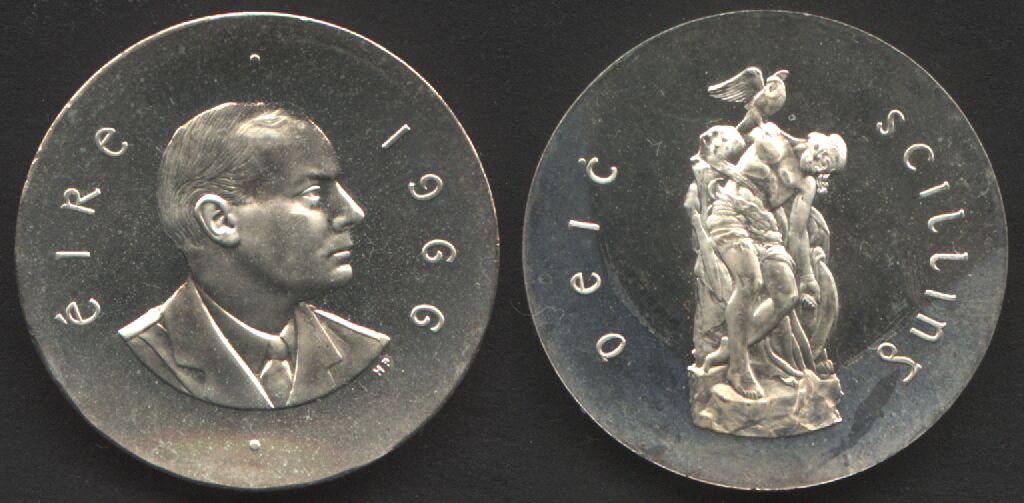 More officially, to commemorate the 50th anniversary of the Rising, Sheppard’s Cú Chulaınn made an appearance, along with Pearse, on the nation’s ten shilling coin (with “Éırí Amach Na Cásca 1916” on the edge (WP). (For the 75 anniversary, Cú Chulaınn appeared on a stamp.)