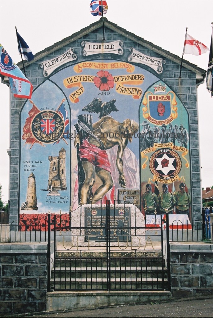 It is worth noting that, contrary to what was asserted above about the dying Cú Chulaınn never representing active republicans, in PUL muraling – whether UDA or UVF – Cú Chulaınn is always tied to active paramilitaries. There is no mural using Cú Chulaınn as a symbol of dead loyalists, perhaps because their history as “defenders” of Northern Ireland only begins with the Troubles. (We will see below Cú Chulaınn in the context of the 36th Division.) The purpose of Cú Chulaınn in PUL murals is to modern-day (Troubles and post-ceasefire) physical-force loyalism as an on-going extension of a long-standing tradition of violence.
