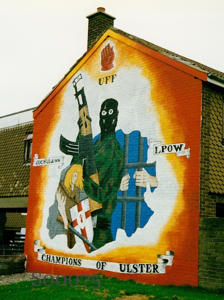 For example, here is an early (c. 1996) mural in the Lincoln Court area of Londonderry, which presents a living Cú Chulaınn as an analogue to loyalist paramilitaries and prisoners of war (“LPOW” on the right):