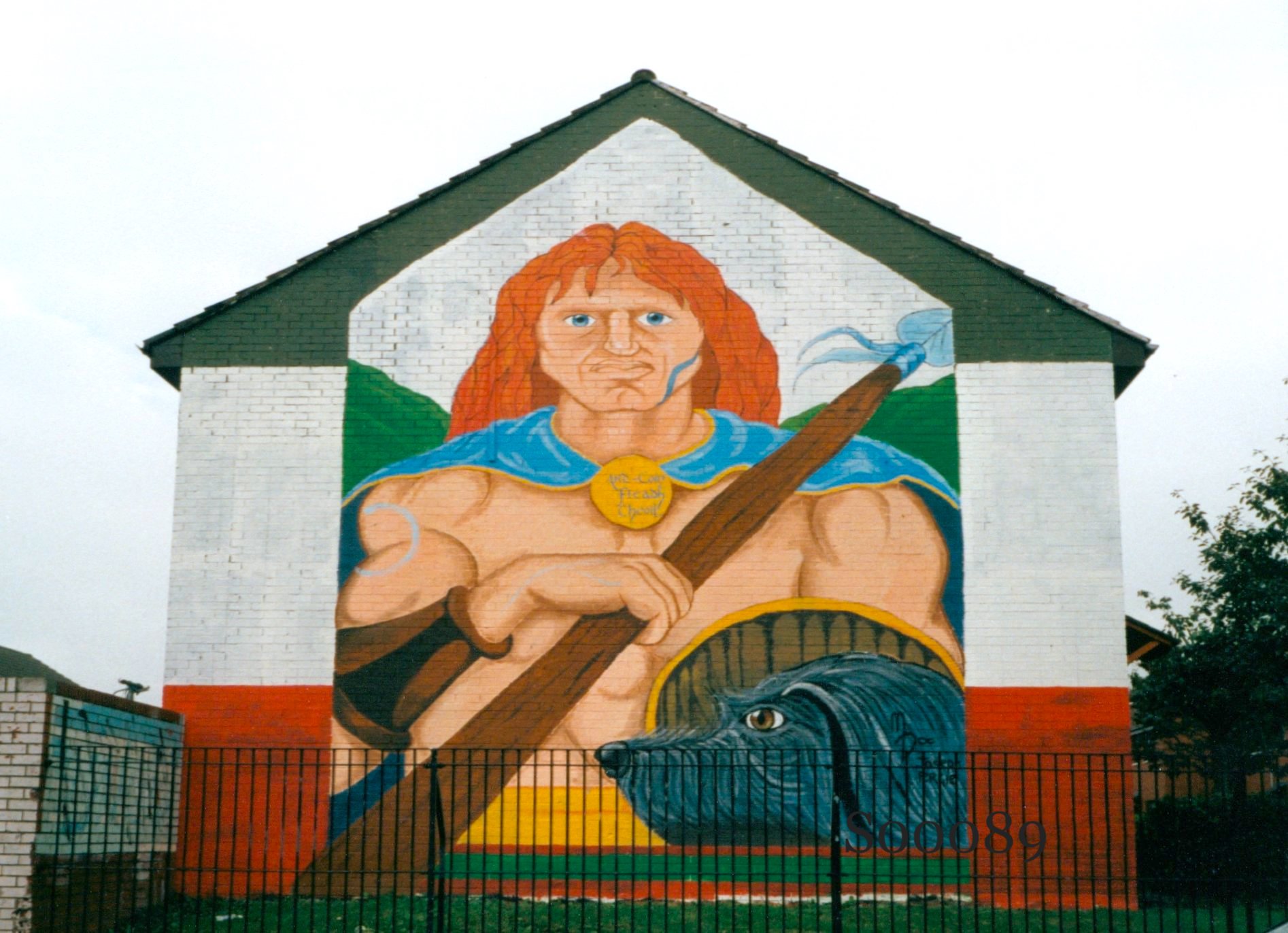 Also in Ardoyne, Cú Chulaınn was painted as a warrior for the Ard Eoın Fleadh Cheoıl, a cultural event.