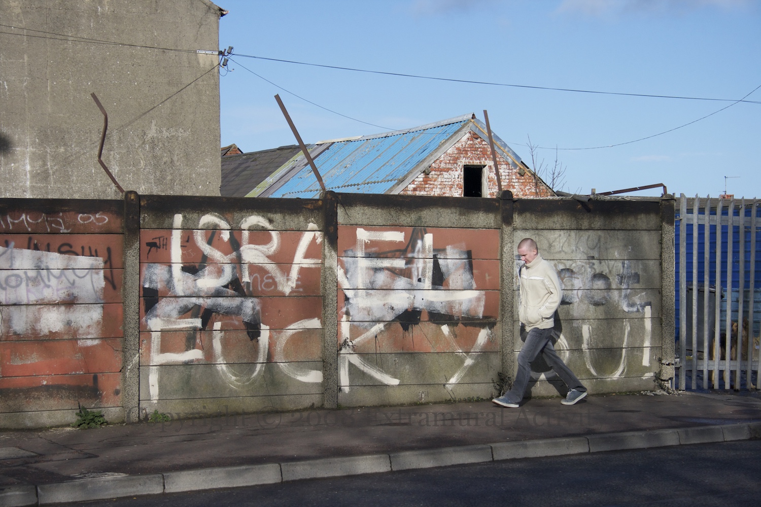 The next two are graffiti on the wall at the old Andersonstown RUC barracks in west Belfast, which was demolished in 2005.