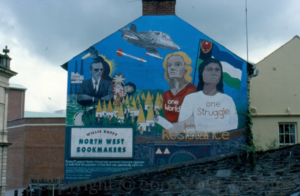 A number in parentheses at the end of an entry refer to items in a list of 32 international murals from 1982-2006 by Bill Rolston in ‘Brothers On The Wall’ (Journal Of Black Studies 39.3 pp. 457-9).
