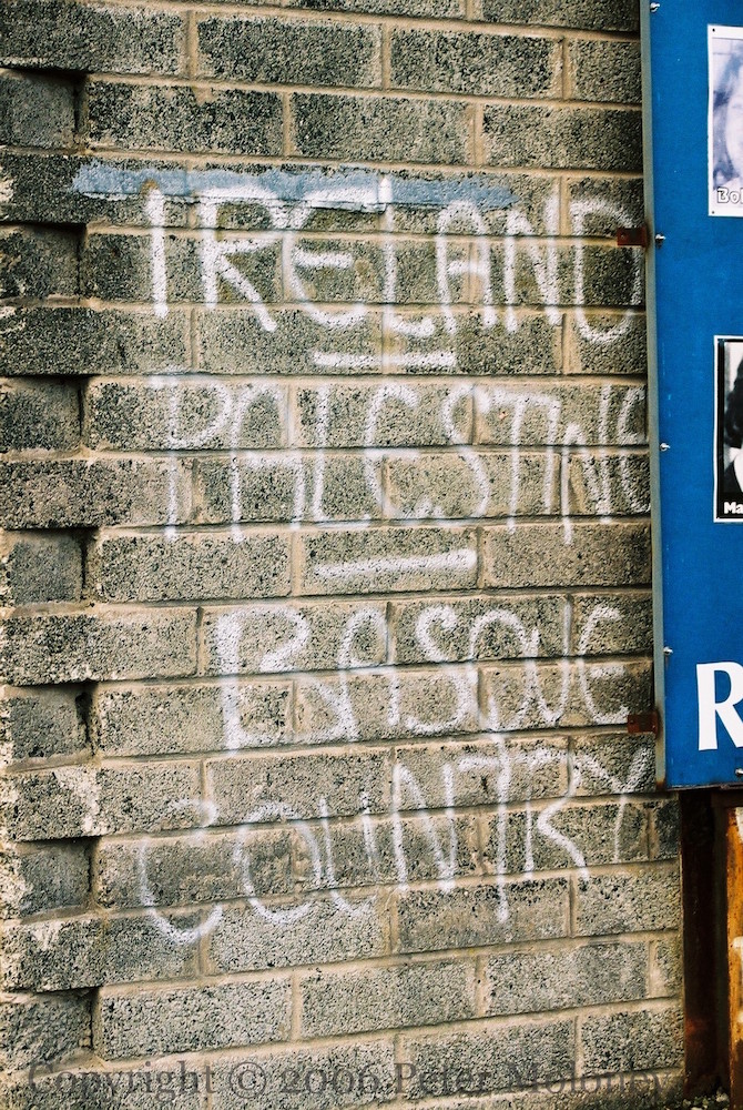 “Support Hezbollah in their fight against Isreal [sic] scum! Isreal [sic] scum out now!” Rossville Street, Derry.