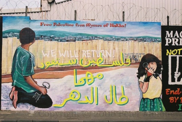 “Free Palestine From 60 Years Of Nakba!” on the International Wall, Divis, west Belfast.