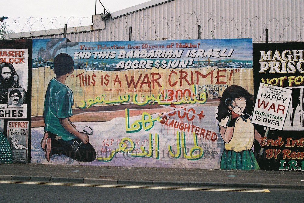 Barbarian Israeli Aggression – updated mural on the International Wall, Divis, west Belfast.