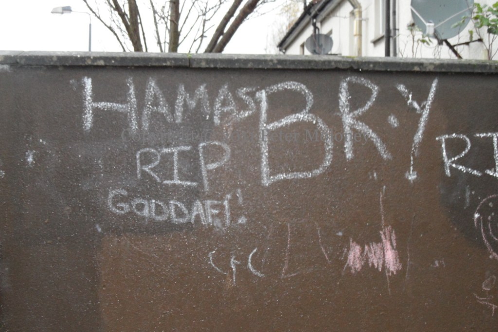 Pro-Hamas and Gaddafi graffiti in the Bogside, Derry.