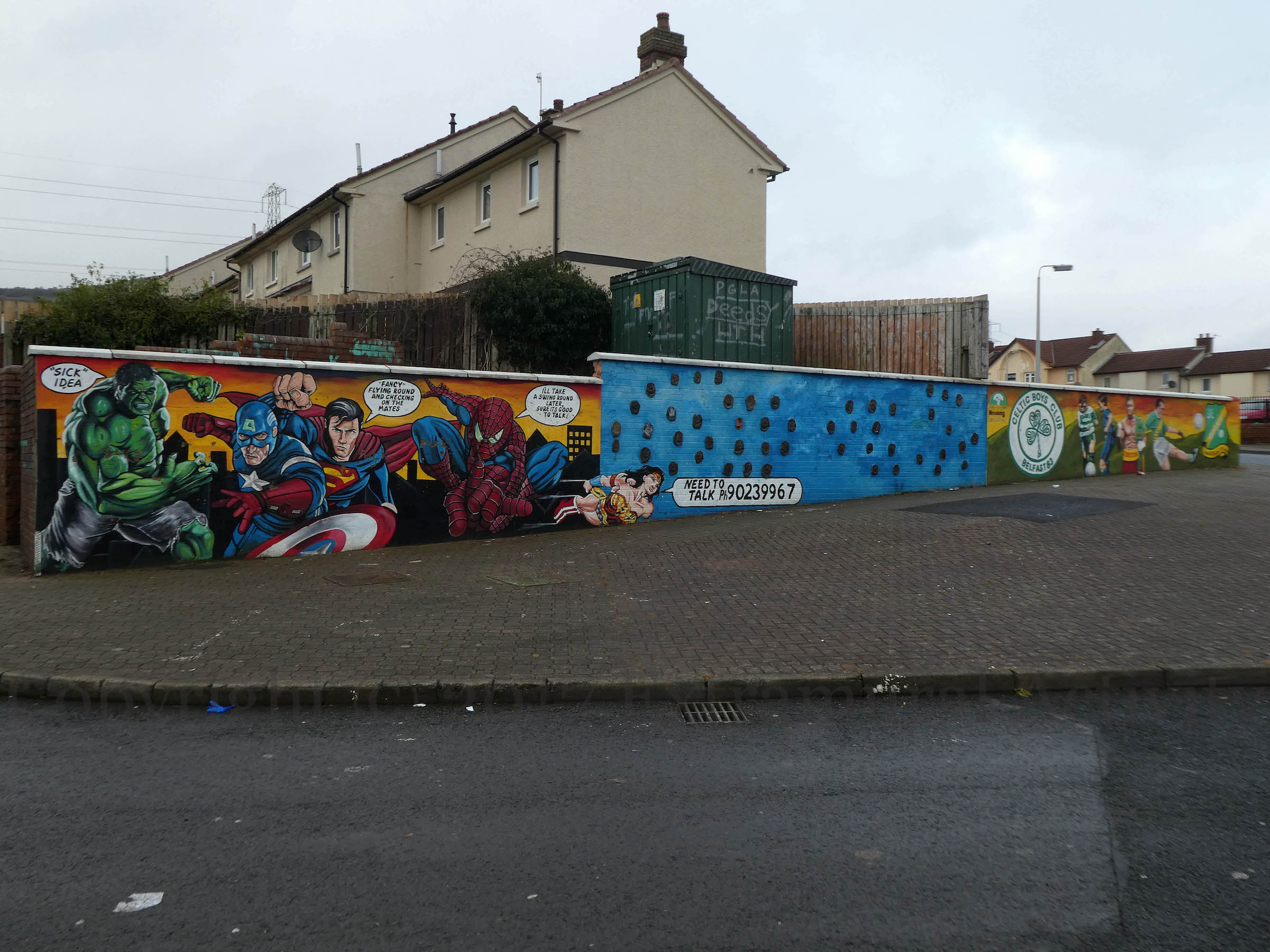 Ross Wilson’s statue ‘Mother – Daughter – Sister’ was launched in 2015 (Art Council NI), two years after his King William mural which towers over it (see final image). “This sculpture celebrates the female cultural identity of Sandy Row and the generational contribution women have made to this community both in the family and workplace.” With a verse from the Doris Day song ‘Que Sera Sera’ from Hitchcock’s The Man Who Knew Too Much.