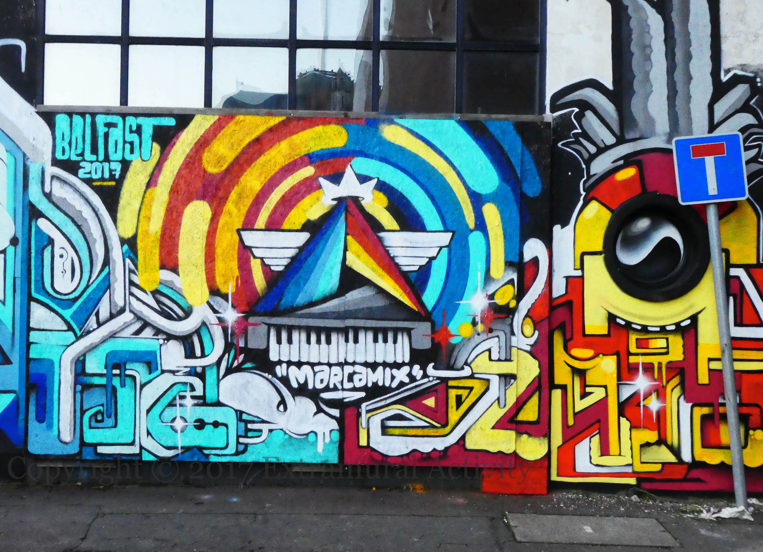 Secondly, the mural is covered in French posters from the 1970s – which visitors were encouraged to sign and leave messages on – as “Act 1” of the No Walls project involving KRM (Cherif and Geza, a couple from France and Germany), Paul Doran, and Londoner John Costi, and which also included an exhibition in the Titanic museum (pdf of the full project).