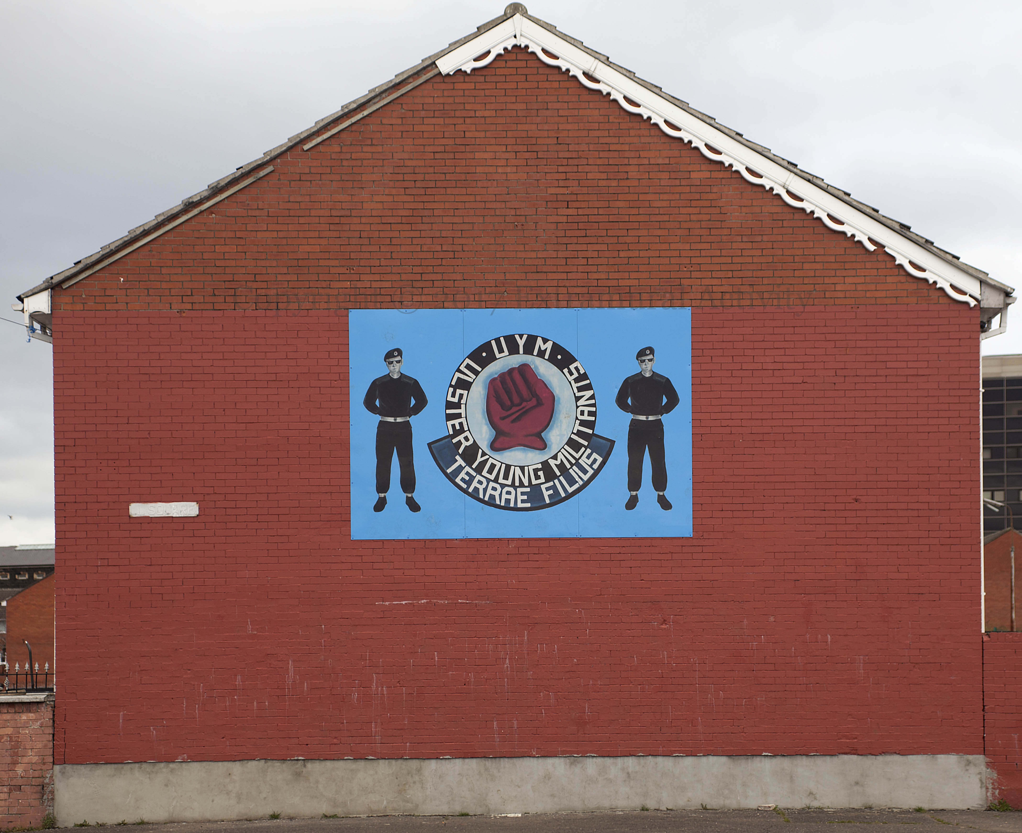 Photographic portraits of four UVF members – Robert “Squeak” Seymour (east Belfast commander), Joe Long, Robert Bennett, James Cordner – on panels adjacent to a new Somme mural (shown tomorrow). Seymour died in 1988, the others in the early seventies. The same four are commemorated on a mural (and a plaque) on Ballymacarrett Road. “At Ulster’s call, they gave their all, a different war, on a different day, a bloody sacrifice, was the price to pay.”