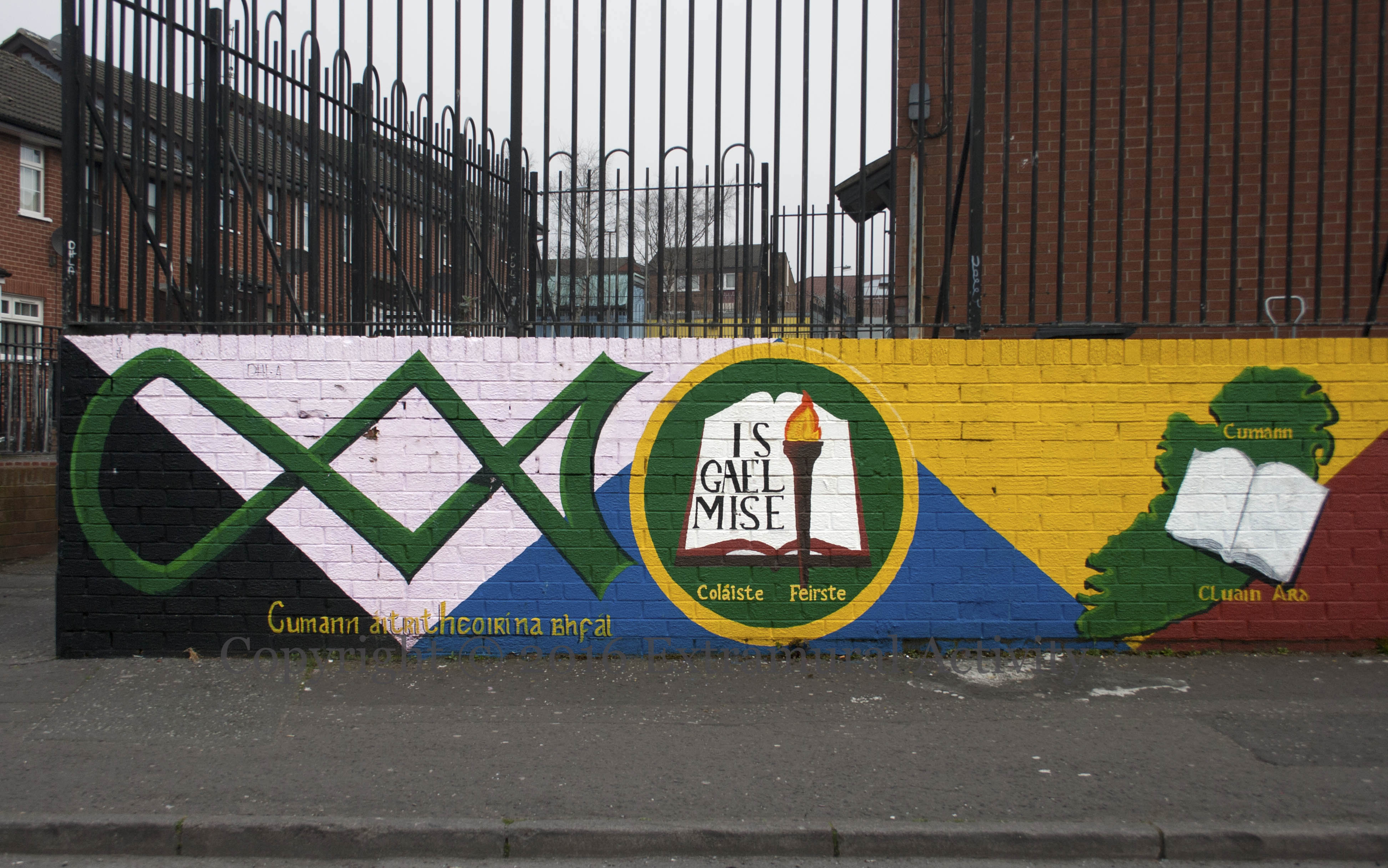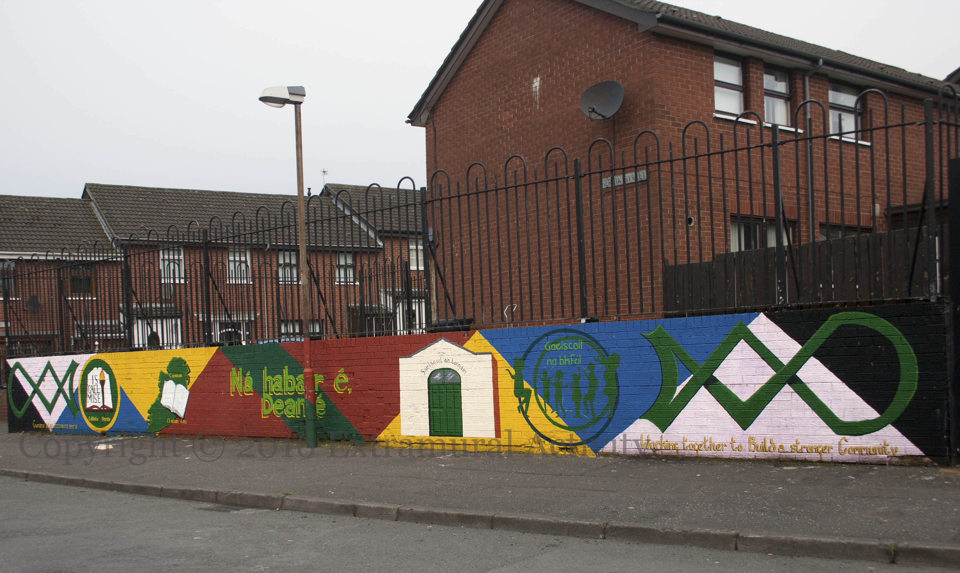 Here is another mural, this time in west Belfast, in the campaign demanding a response to a shortage in low-income housing. For more, see previously, Equality Can’t Wait.