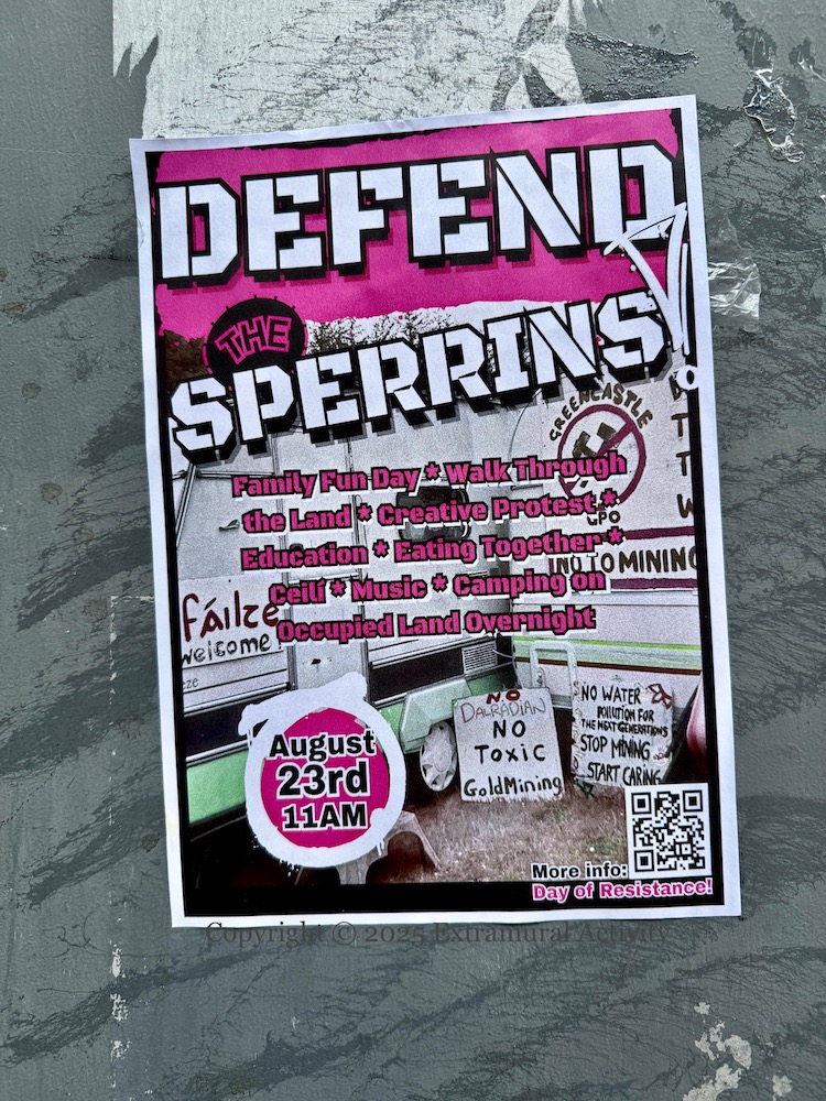 “Tackle inequality – create opportunities – inspire change”. The large board shown here is in Cupar Way, near the security gates in North Howard Street, which are locked nightly between 8:30 and 6:30 a.m. (DoJ). These and the nearby Northumberland Street gates separate the lower Falls and the middle Shankill, including the young people from the Active Communities Network (web), a cross-community youth group that lobbied for increased opening hours to allow members to return home quickly after meetings (BBC).