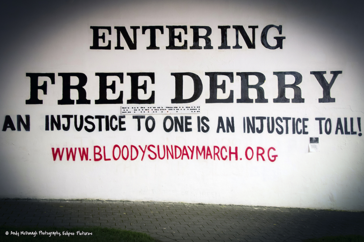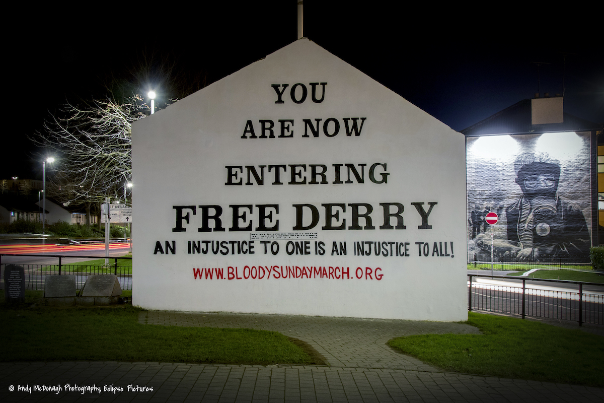 On the side wall to the new Bloody Sunday mural in Derry, the chain of command is found guilty war crimes in Northern Ireland on January 30th, 1972 – Bloody Sunday: “Guilty; Heath, Wilford, Ford, Kitson, Loden”. From the top down, the five people mentioned are: