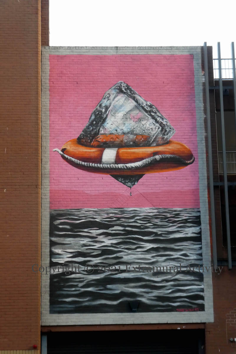 If the ice melts, we’re all in the drink – an environmental message from Spacer (Shane Sutton tw) for Friends Of The Earth (NI) (ig | tw) in High Street, Belfast.