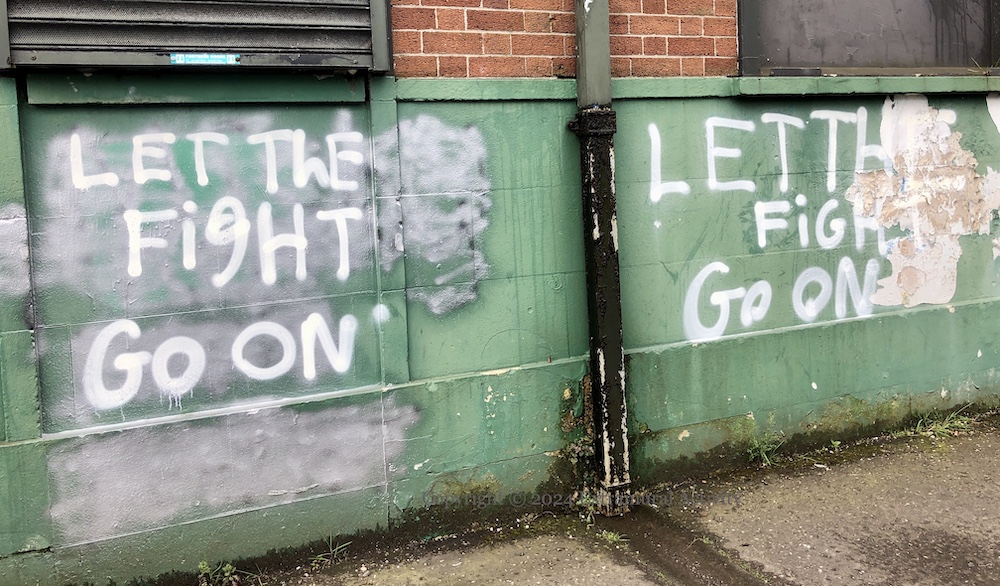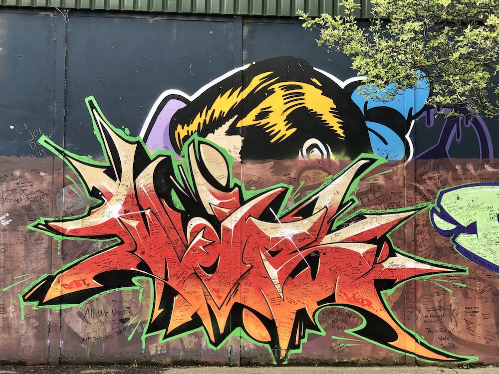 For wild-style from December (2023) see Bombing The “Peace” Line. For ten or so pieces of street art and wild-style writing on the wall from May 2023, see Ready To Rumble.