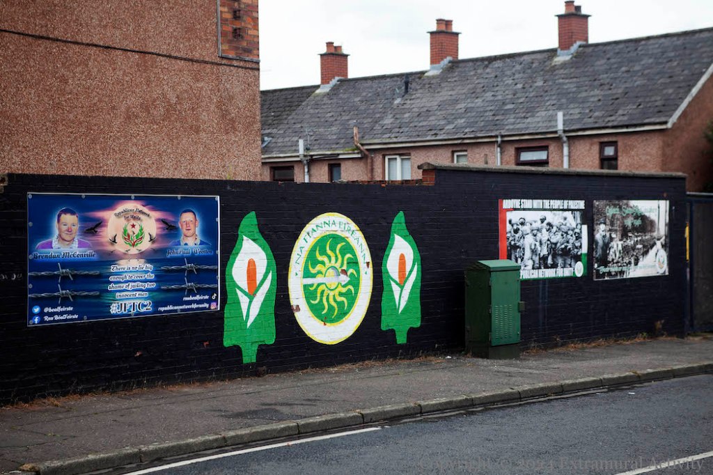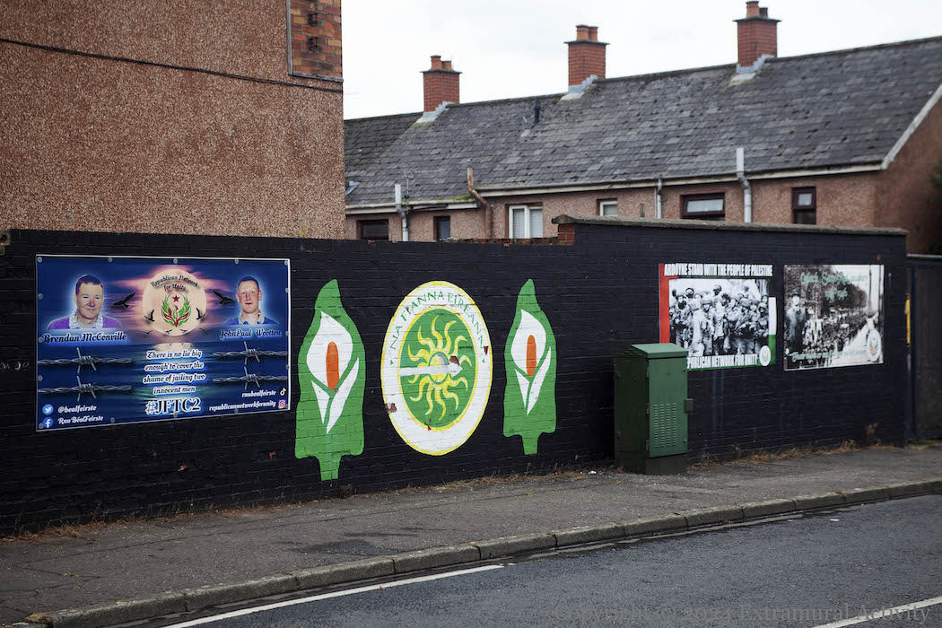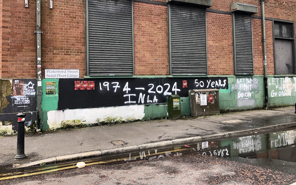 This is a west Belfast instance of INLA graffiti – seen previously in Derry (Saoırse Go Deo) – celebrating the fiftieth anniversary of the group’s founding, in December, 1974.