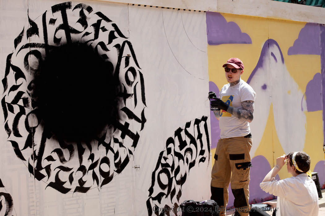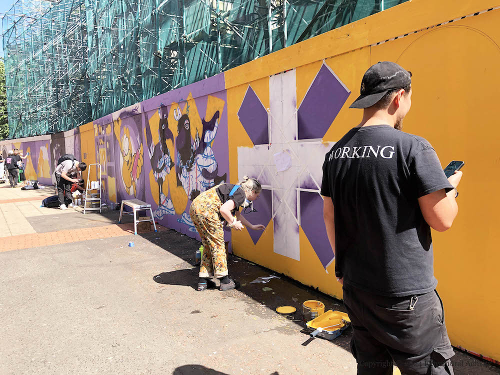 A (Hit The North) Paint Jam was held on Saturday (the 25th) in Lower Garfield Street, organised by Seedhead Arts (ig) and the Belfast Improvement District (BID web). Shown below are Laura Nelson (ig), NRMN (ig), and Ollie Amscai (ig).