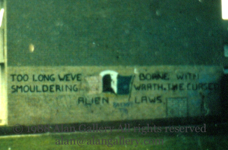 There might be many more: Rolston says that there were a few pieces of careful lettering (such as the first two items below) and two murals from early 1981 (M00184 and M00086 below), but that “After Sands’s death, an explosion of murals occurred in nationalist areas. Within a few months, at least one hundred were painted in Belfast, fifty in Derry, and others in nationalist areas of Armagh, Lurgan, Newry, and Strabane.” (Rolston 1991, p. 79)