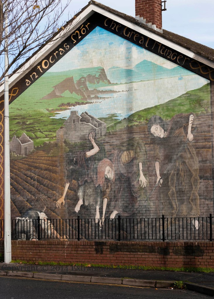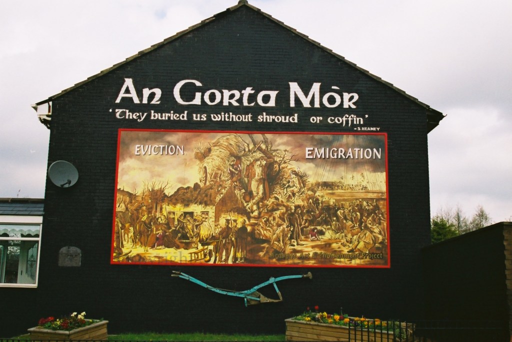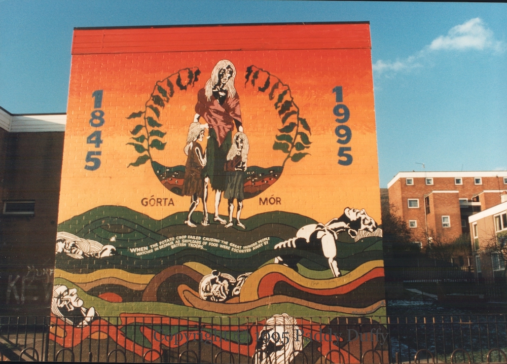 Only one mural on the subject of the Great Hunger (An Gorta Mór, An tOcras Mór, An Drochshaol/Droċ-Ṡaoġal, the famine) is recorded prior to 1995: