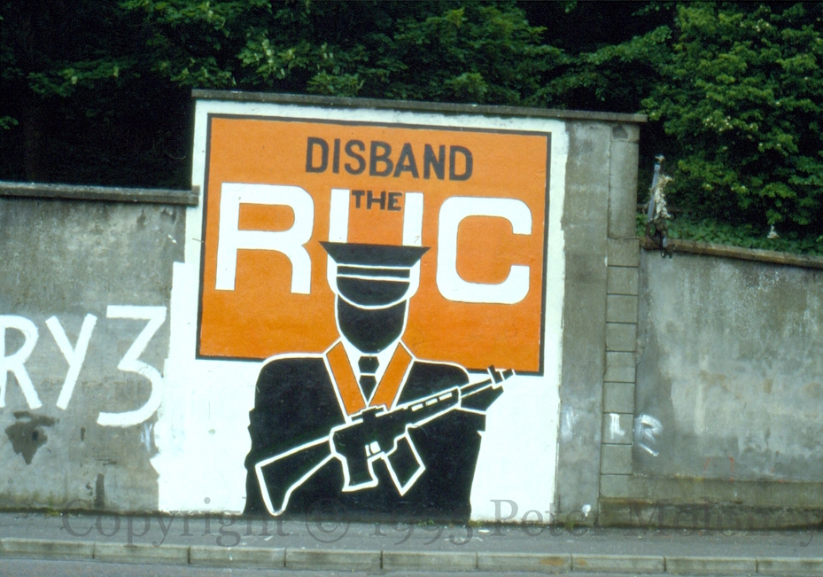 “Guilty of murder, torture – disband the RUC” in the New Lodge, Belfast.