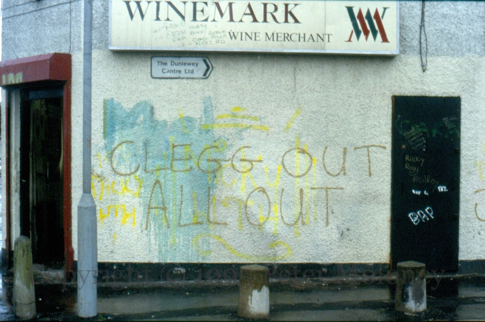“We won the war – Victory to the IRA”. Graffiti on the Shankill alternatively read, “We accept the unconditional surrender of the IRA – UVF.” (R2090)