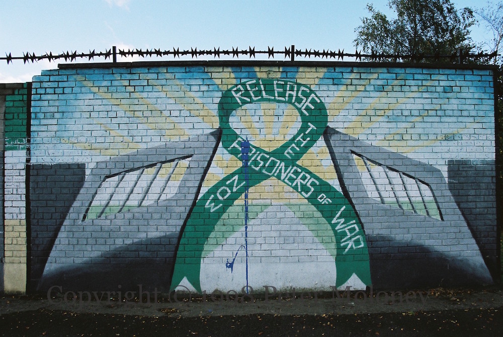 “Release The Prisoners Of War Now”. Racecourse Road, Derry.