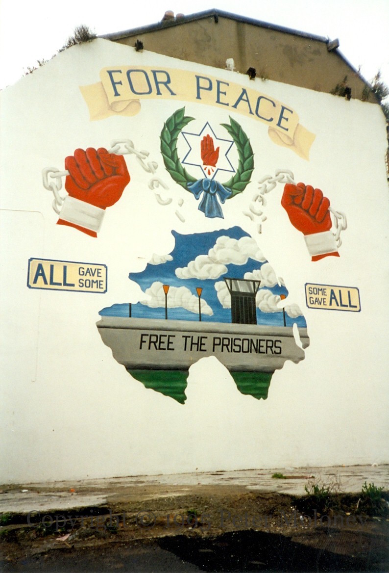 Freedom would also include loyalist paramilitaries incarcerated in Long Kesh. This mural is from the (PUL) Shankill.